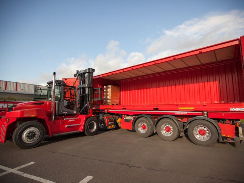 Loading and unloading with forklift truck from the side