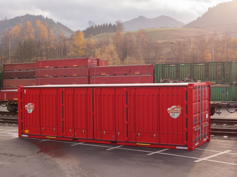 The MOCO-Flex is a complete new 30 ft Open-Top, Side- and Rear-Open-Container, which can be loaded and unloaded from 3 sides. Goods can be stuffed into the MOCO-Flex either from the top (Open-Top), or from the side (Side-Open), as well as from the rear (Rear-Open). The MOCO-Flex was developed exclusively for use in the multi modal traffic street-railway. A wide range of goods can be transported with the MOCO-Flex: bulky goods, which are loaded from the top and discharged from the rear by tipping, cranable goods which are loaded and unloaded from the top, or materials which are loaded and unloaded by forklift from the side or the rear. All of those goods can be handled by the MOCO-Flex.
