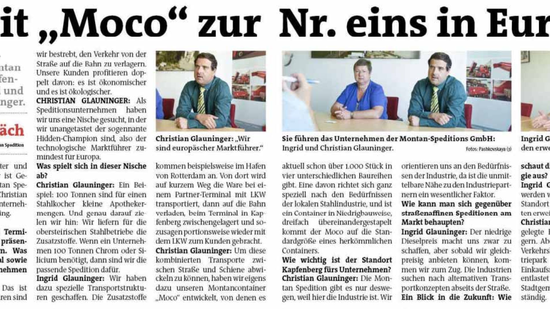 - Interview with Montan Spedition in the Bruck/Mur edition of the weekly newspaper WOCHE