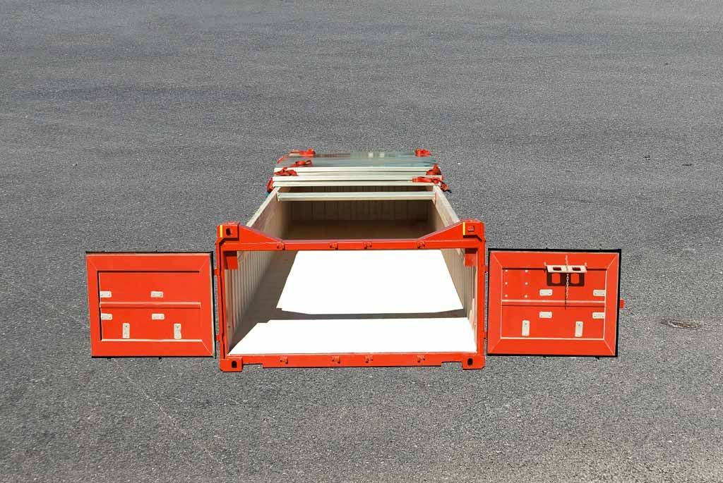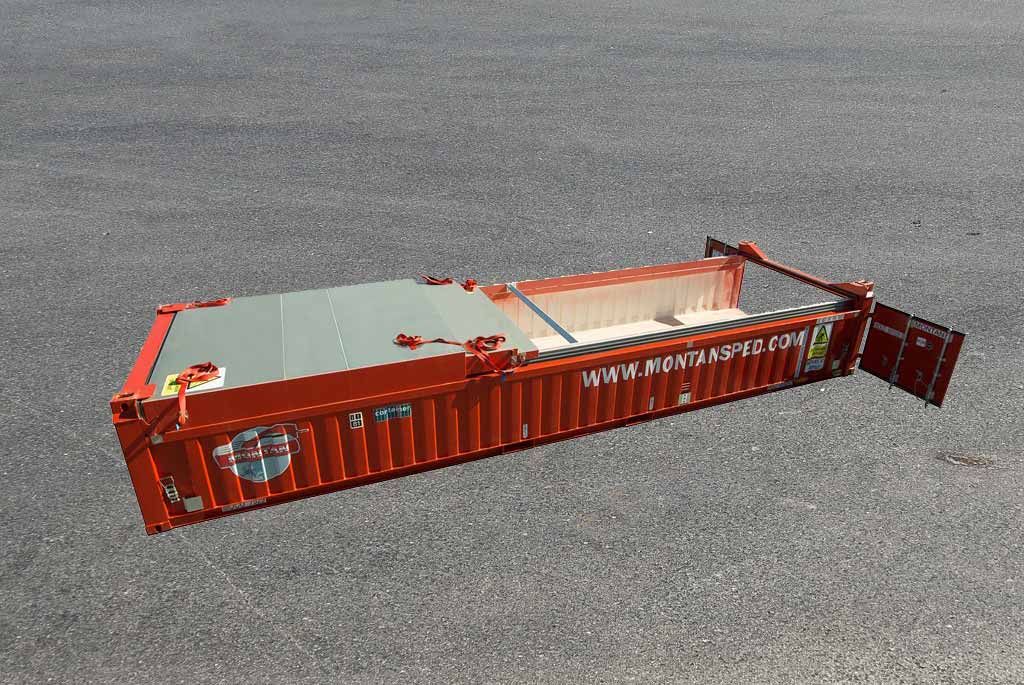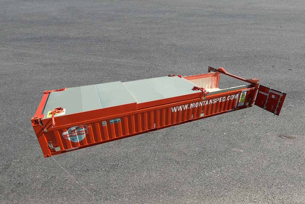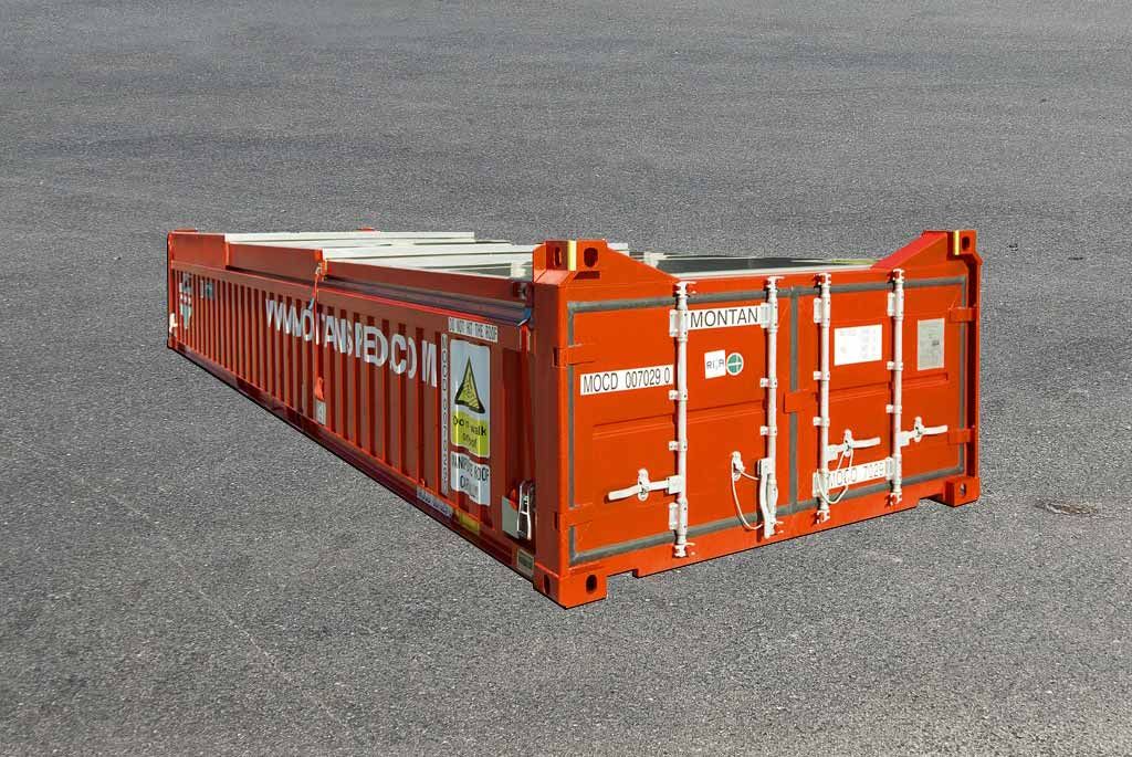 MOCO-Bulk-ROOF, 2 taraftan yüklenebilen ve boşaltılabilen 30 ft'lik üstü açık ve arkası açık bir konteynerdir. MOCO dökme TAVAN'a mallar hem yukarıdan (üstü açık) hem de arkadan (arkadan açık) getirilebilir. Bu konteyner yeniliği, bu nedenle, öncelikle, yukarıdan yüklenen ve boşaltılan (örneğin bir vinç kullanarak) gevşek dökme malların ve vinçle taşınabilen malların taşınması içindir. Yeni konteynerin ana uygulama alanları, hammadde lojistiği, yani gevşek dökme malların taşınması ve ayrıca çelik ve metal ürünler gibi vinçle taşınabilen malların taşınmasıdır.